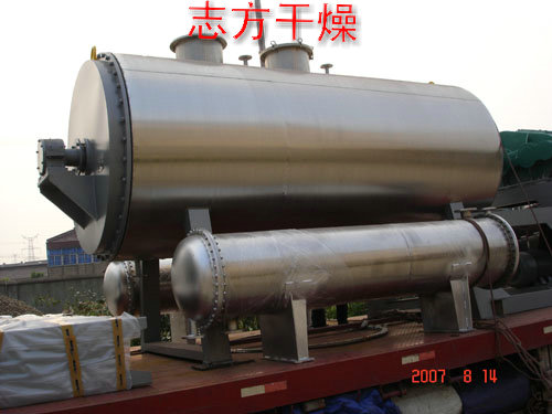 ZKG型耙式真空干燥机应用于医药、食品、化工等行业进行以下物料干燥。适用于浆状、膏糊状、粉状物料。要求低温干燥的热敏性物料。易氧化、易爆、强刺激、剧毒物料。要求回收有机溶剂的物料。 ZKG型耙式真空干燥机采用夹层与内搅拌同时加热方式,传热面大,热效率高。本机设置搅拌,使物料在筒内形成连续循环状态,进一步提高了物料受热的均匀度。ZKG型耙式真空干燥机设置搅拌,从而可顺利进行浆状、膏状、糊状物料干燥。