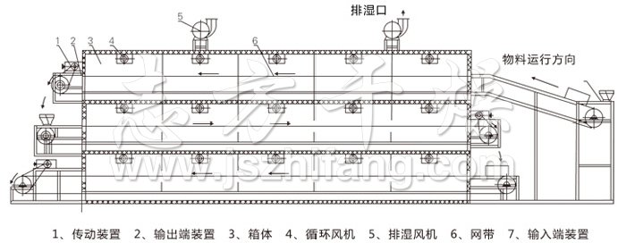DW系列多层带式干燥机是成批生产用的连续式干燥设备,用于透气性较好的片状、条状、颗粒状物料的干燥,对于脱水蔬菜、催化剂、中药饮片等类含水率高、而物料温度不允许高的物料尤为合适;该系列干燥机具有干燥速度快、蒸发强度高、产品质量好的优点, 对脱水滤饼类的膏状物料, 需经造粒或制成条状后方可干燥。