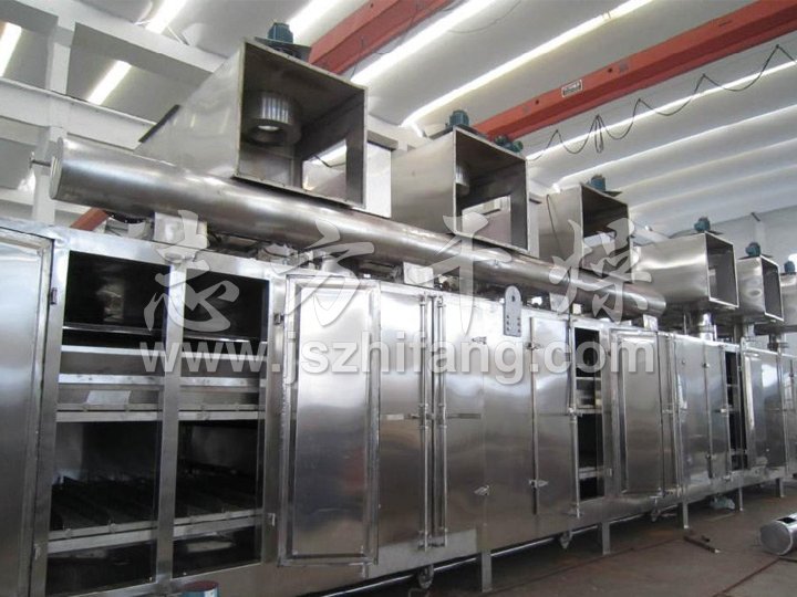 该机是穿流连续式干燥设备,用于透气性较好的片状、条状、颗粒状物料的干燥,对于脱水蔬菜、中药饮片等类含水率高、而温度不允许高的物料尤为合适;该系列干燥机具有干燥速度快、蒸发强度高、产品质量好的优点,对脱水滤饼状的膏状物料,需经造粒或制成棒状后亦可干燥。